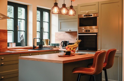 • Fully equipped kitchen with modern appliances, perfect for cooking meals.