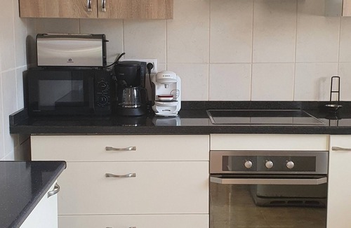 Equipped kitchen fridge, gas hob, electric oven, dishwasher, microwave, coffee maker, kettle, toaster, citrus press, etc.