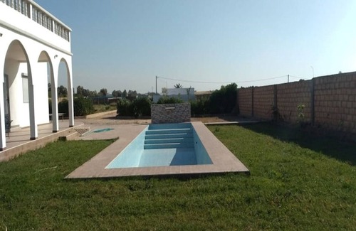 On a surface of 3500 m ², of 6km of the auto road 7km of Azemmour and 15 km of Eljadida near mazagan and royal golf, is located this villa surrounded by green and calm, fruit trees, a big terrace, a kitchen (oven, microwave, washing machine)