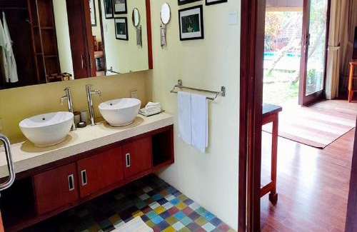 Featuring garden views, Villa with private pool at Villa Nirvana Ubud in Ubud provides accommodations and a garden. With pool views, this accommodation offers a balcony and a swimming pool. The accommodation features a hot tub, free Wifi throughout the property, and family rooms. The villa complex will provide guests with air-conditioned units offering a desk, a kettle, a safety deposit box, a flat-screen TV, a terrace, and a private bathroom with a hot tub. There's also a dressing room and a seating area. At the villa complex, every unit is equipped with bed linen and towels. À la carte and American breakfast options with pancakes, fruit, and juice are available. Popular points of interest near the villa include Blanco Museum, Saraswati Temple, and Neka Art Museum. Ngurah Rai International Airport is 21 miles from the property, and the property offers a paid airport shuttle service.