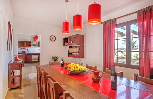 The villa is located in pure volcano natural landscape. Without a direct neighbor. The nearest restaurant in Valle Ortega is 2 km and also a mini supermarket and 2 bars are there. Bid to Antigua is about 5 km. Here you will find a bakery, pharmacy, Supermart, medical center, restaurants, food to go and various small bars. The cheese museum is located directly on the outskirts. To the nearest stone beach you need 5 km. A small typical Canarian village with 2 restaurants surround the beach. In Gran Tarajal 25 km from the villa there is a beautiful large sandy beach. Along the beach promenade you can eat and drink in various restaurants and cafés. It is a local place with medical center, supermarkets and much more. If you head north, you will cross the Salt Museum and in Caleta de Fuste there is the nearest shopping center and beautiful sandy beaches, a harbor, many bars, cafes, restaurants, golf, mini golf, tennis, and ....... To find NIGHTLIFE. Further north you pass another business zone. Here are IKEA, Mercadona and others. Shops settled. Another Lidl is currently under construction. The old Lidl can be found in Puerto del Rosario. This is already a larger city with many interesting sights. As you can see, you can spend a relaxing holiday with us and still have to do without anything.