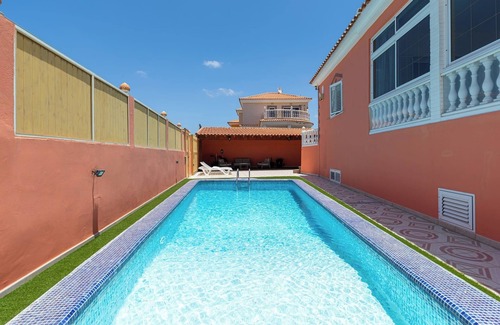 Fully-equipped independent villa with private pool, sun terrace and bbq, located in the residential area of Sonnenland, with wonderful views of Maspalomas and the sea, for a perfect holiday in the south of Gran Canaria.