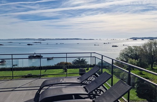 Gite the waterfront overlooking the archipelago of Bréhat, the output of Trieux, the island and the island Modez wood. The house has 5 bedrooms 4 bathrooms, 3 separate toilets and 3 bedroom suites with sea view. The panoramic terrace is open in L is for breakfasts and south for lunch and dinner. You have walking access to oyster farmers to provide direct mussels oysters and seafood. The plot of 1800m2 is completely fenced and you have a sea access to the end of the garden.