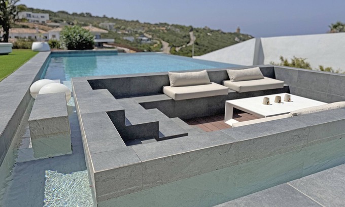 Essencia is a spectacular modern villa situated in the most privileged of positions by the Cala de los Alemanes (a fabulous beach) and very close to the Faro Camarinal (the lighthouse). There are phenomenal views towards the lighthouse and beyond to the coast of the African continent. This designer property has a floor-area of approximately 650m2 and sits within a plot of approximately 2,200m2. Outside there is parking space aplenty, enough for many vehicles. It boasts a beautiful infinity pool and fully furnished terraces from which you can enjoy the view, the fresh air and the famous Zahara sunsets. The situation of this villa is unrivalled.