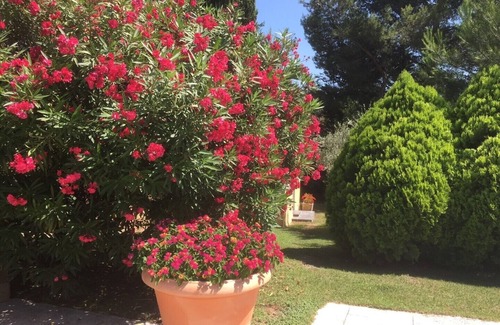 This vacation rental with pool in Beaucaire offers a beautiful garden, fenced, 1000 m² with automatic gate, a quiet and exceptional not overlooked.