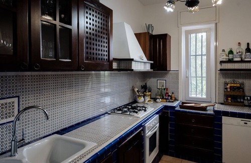 In the middle of an olive grove lies our villa, Casa Mario, far from tourism in the Madonie Mountains of Sicily. The villa is furnished in a country house style and offers all the comforts you would not want to miss at home. The upper area is equipped with a modern kitchen (gas stove, dishwasher, electric oven, Italian coffee maker, Bosch fridge), two bedrooms, living room, dining room and a guest toilet. An external staircase leads to the lower area, which again has a bedroom with 4 beds, a small kitchen and a shower room. There are two terraces: the upper one is equipped with two parasols and a wooden table with 4 chairs and two sun loungers. The lower terrace is covered, has a lava stone table with 8 chairs, a brick grill, a couch with a table and a small cupboard for plates, cutlery and glasses. In the middle of the spacious garden (1 hectare), surrounded by fruit trees, palm trees and olive trees, is the swimming pool (10 x 5 meters) about 100 meters from the lower terrace. There are four loungers, a Dedon basket as well as a couch group with shade-giving parasols and an awning. The pool is filled with saline water and is automatically supplied with the respective chemicals.