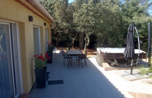 57-m² villa, completely new and fully equipped, lies on a 1450-m² garden with trees and flowers. At your disposal during the stay: heated pool, Jacuzzi, hammam, external solar shower and sun loungers. The villa has a fully equipped kitchen with refrigerator, freezer, oven, dishwasher, microwave, ceramic hob, coffee maker, toaster and all necessary flatware. The living room features a small sofa, coffee table, dining table, TV (TNT channels), Wi-Fi (free). The first bedroom (16-m²) has a queen-size bed (160 x 200-cm) and a large wardrobe. The second bedroom (11-m²) has a double bed (140 x 190-cm) and storage spaces. The bathroom has a shower, a bathtub, a washing machine, and a toilet. Exterior: the house has no direct neighbours and is south oriented. Swimming pool: 8.50 x 4.20 m heated. Jacuzzi: for 5 people, jet streams. Hammam: for 4 people. Terrace: equipped with sun loungers and sun umbrellas. There is an external solar shower and a large parking space (4-5 cars) completely enclosed. Extras without additional costs: baby equipment (cot, high chair, bathtub, and pool equipment like baby float); gas barbecue; bed linen (home linen, sheets, pillowcases, blankets). Extras with additional charge: cleaning service (bed linen change, vacuum cleaner, toilets disinfection) is possible at the end of the two-week stays or more for €40. The village: Sainte-Anastasie-sur-Issole is a Provencal village, with a bakery, small shops, a café, a square and a medical centre, a pharmacy and restaurants. It is located 40 minutes away from the most beautiful beaches on the coast. Sainte-Anastasie-sur-Issole is ideally located between the calm countryside and the tourist areas on the seaside. Region's activities: you have the possibility to enjoy the activities of the region such as hiking, Provençal markets, the Gorges du Verdon, paragliding, canyoning, and concerts. For children, the Sainte-Anastasie-sur-Issole municipality organises a summer camp (please book in advance). For facilities maintenance (especially for the swimming pool, the hammam, and the Jacuzzi), the owner lives on the same property in a detached building. During your stay, she guarantees total discretion for a peaceful stay. She will be at your disposal to give you all the information about the facilities and to suggest activities of the region. Noise: this villa is located in a green and calm residential area. It is a place to rest and relax. Please respect the neighbourhood, do not play music too loud.