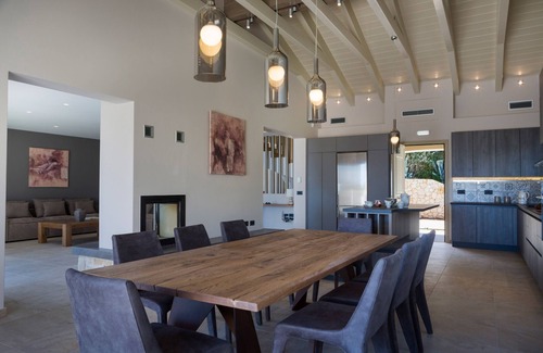 Overlooking the Ionian Sea from a panoramic position, this brand-new villa ( April 2015) offers the highest standards of quality and luxury, at the outskirts of village Lakithra in Kefalonia.