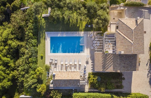 This private luxurious villa has large spacious lounge areas with large windows opening into a very large veranda for relaxing summer entertaining.There is a large infinity swimming pool with jacuzzi, in the garden. The main villa has 3 bedrooms and 3 en-suite bathrooms with shower and at the studio house, next to the main house, there is another bedroom, bathroom with shower and fully equipped kitchen.