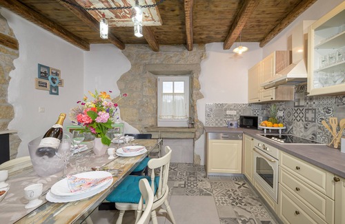 Casa Zamarija, located in a picturesque setting, is a true Istrian paradise for vacation. This beautiful stone house, carefully renovated with love and creativity, offers an authentic experience of Istrian style with a touch of modern comfort.With its idyllic location, Casa Zamarija is surrounded by nature and provides complete peace and relaxation. In the spacious courtyard, guests can enjoy the beautiful pool with a hydro-massage feature and a children's pool, while relaxing on comfortable sun loungers. For outdoor cooking enthusiasts, there is a stunning summer kitchen with a wood-fired fireplace, perfect for preparing delicious meals while enjoying the fresh air and nature.Inside the house, the ground floor offers a spacious living room, dining area, and a fully equipped kitchen, creating a comfortable space for socializing and dining. Additionally, there is one bathroom available. On the first floor, three beautiful bedrooms provide comfortable accommodation. Each room has its own bathroom, providing privacy and convenience. Two rooms are equipped with comfortable double beds, while the third room has three separate beds, making it ideal for families or groups of friends.Casa Zamarija combines the charm of traditional Istrian architecture with modern amenities to provide an unforgettable vacation. Guests also have access to air conditioning units on the upper floor for additional comfort. Enjoying the tranquility and beauty of nature, this house is the perfect place to relax and escape the hustle and bustle of everyday life. Distances: restaurant 500m, shop 3000m, center 500m, sea 5000m, beach 5000m, airport 40000m.