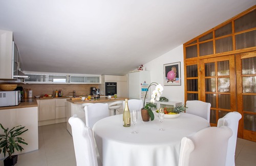Villa Zorka is a fully equipped spacious apartment (158 m2, 6+2) on the 2nd floor of a family house. It features a living room, dining room, kitchen, 3 bedrooms, 2 bathrooms, 3 terraces, fitness room, outdoor pool and a parking place.
