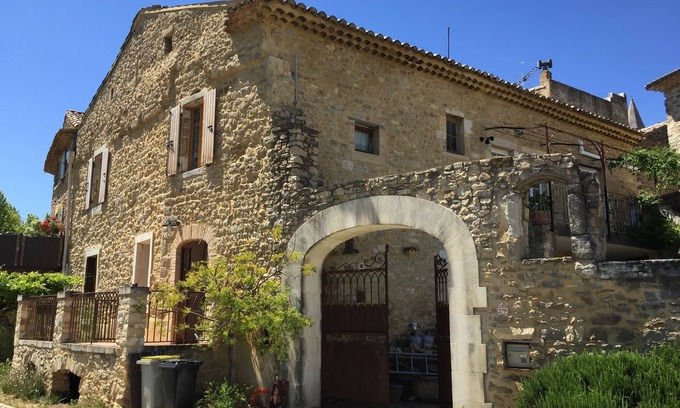 Village house / apartment on the first floor completely renovated, access from the courtyard + small swimming pool. Large F5 with view on the Rhône valley and the Ventoux (East / South-East). First level: The entrance leads to the fireplace / living room / fully equipped kitchen area. 1 large bedroom with access to living room, terrace and bathroom. Large bathroom / separate WC. Second level: Cozy mezzanine lounge, one bedroom on the mezzanine and one closed bedroom overlooking the roof solarium terrace.