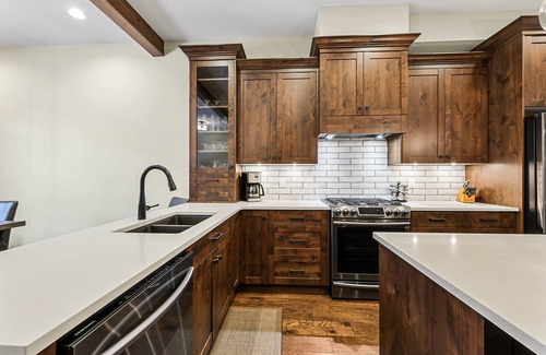 Welcome to Village Moose at Villagewalk #16! A ski-in, step-out 4 bedroom, 3.5 bathroom luxury townhouse that backs up to the quiet valley trail. This thoughtfully envisioned townhome offers 2,400+ square feet of high-end living space that will comfortably sleep 10 people. At the end of a long day of skiing, biking or hiking, you'll be able to relax in total privacy in the extra large 8-person hot tub on the back patio.