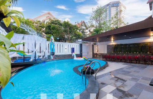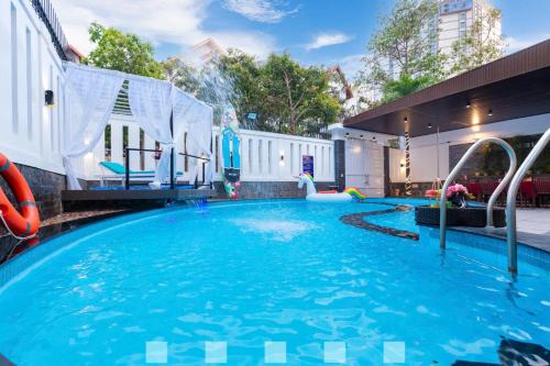 A 5-minute walk from Back Beach in Vung Tau, Villages GOLD DAY 20 Khu KIM MINH Hồ Bơi VIP features accommodations with access to a sauna and hot tub. This beachfront property offers access to a balcony, free private parking, and free Wifi. The rooftop pool features a pool bar and water slide. Featuring a terrace and sea views, the spacious villa includes 7 bedrooms, a living room, satellite flat-screen TV, an equipped kitchen, and 7 bathrooms with a walk-in shower and a hot tub. Providing air conditioning, the villa offers Nintendo Wii, PS3, and a iPad. There's also a seating area and a fireplace. There is an on-site bar. The villa has a garden where you can relax, along with a private beach area. Tan Son Nhat International Airport is 61 miles from the property.