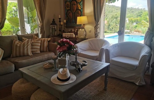 Fantastic villa with swimming pool . It has a total capacity for 10 people. The house villa Melba is not only a house, it has a very peculiar vintage farmhouse style. It is located only 15 minutes drive from the beach, 45 minutes drive from Barcelona and 20 minutes drive from Girona Airport and 15 minutes from Caldes de Malavella train station. It is 15 minutes drive from Playa de aro, Tossa de mar, and the most beautiful beaches of the costa brava. The villa has a private swimming pool with a jacuzzi area, a terrace with sun loungers, an outdoor barbecue and a garden area. Inside the villa, you will find 5 bedrooms, 2 bathrooms, a living-dining room, an open and fully equipped kitchen.