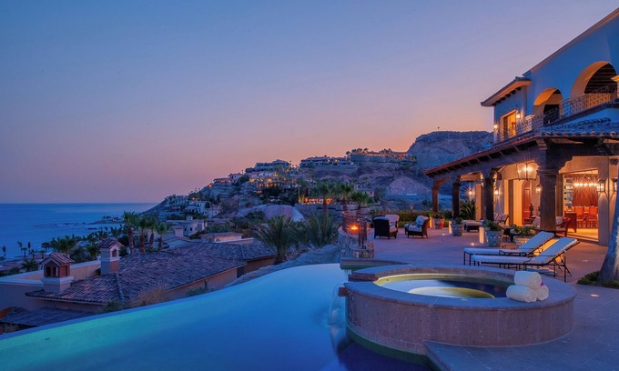 When you're in the mood for outdoor luxury, you don't have to go far to find it at Hacienda Del Mar. This property features a fantastic infinity pool and Jacuzzi combo surrounded by a pool deck dotted with plush loungers and chairs to settle into as well. Hacienda Del Mar is equipped with a collection of covered verandahs to savor on extra-sunny days, and also hosts a fire pit to gather around under the stars in the evening. The outdoor dining furniture invites guests to make the most of an alfresco meal when cravings come calling.