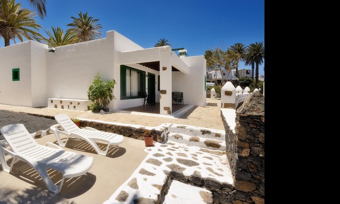 Villas Finca La Crucita spreads over a surface area of 7,500 square metres and is situated in the village of Haria, in the north of Lanzarote. Villas Finca La Crucita is surrounded by over 50 palm trees, the majority of which are over one hundred years old, and it is set in a valley in which thousands of these species. Villas Finca la Crucita with 2 bedrooms is equipped with 1 double King size bed,2 twins, 120 sq. villa, living room, 2 bathrooms, terrace, shared the outdoor pool with solar panels and **Pool heated in winter-time 01 October until 01. April**, Pre-paid air conditioning, free parking and free wifi in communal areas.