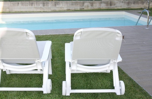 The Golfette "- the golf villas are located in the town of Manerba del Garda, just opposite the golf courses of the famous Gardagolf of Soiano del Lago. In quiet, inserted in a residential area, completely autonomous and independent with all the services are cottages just ended in their low environmental impact construction. They are developed on 3 levels: basement with a large living room, bedroom with bathroom and laundry area; ground floor consists of a modern kitchen with all appliances, bathroom, and comfortable seating overlooking the outdoor patio; first floor with two bedrooms with balconies overlooking the hills of Valtenesi and large windowed bathroom. The villa features a seasonal outdoor swimming pool, a large private garden, and a carport outside. Modern and carefully chosen furnishings give a touch of class and elegance to any environment, making it immediately appreciate those who discover it for the first time.