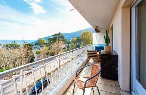 This 62m² 3room flat is located on the 3rd floor with lift. At 10 mins walk from the beach . Fully equipped for your stay: wifi, balcony with 180° view on the bay, 2 bedrooms, AC, living room, bath, TV, fully equipped kitchen.