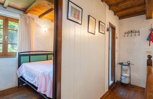 Sant'Anna di Stazzema 12 km from Camaiore: "rustico" cottage "Vincio", 700 m a.s.l semi-detached, surrounded by trees. Above Sant'Anna di Stazzema (2.4 km), in the hamlet Vincio 12 km from the centre of Camaiore, 21 km from the centre of Viareggio, 51 km from the centre of Pisa, on a slope, 18 km from the sea, in the woods. Private: terraced garden, 1'000 m2 with trees, natural garden. 12 km long motor access (mountain road). Stepped path (15 steps) to the house. Parking at the house at 30 m. Grocery 12 km, railway station "Viareggio" 21 km, sandy beach "Lido di Camaiore" 18 km. Nearby attractions: Forte dei Marmi 21 km, Lucca 44 km, Riomaggiore (5 Terre) 79 km, Carrara (cave marmo Fantascritti) 43 km, Firenze 130 km, Collodi (Parco Pinocchio) 62 km. Well-known lakes can easily be reached: Lago di Massaciuccoli 33 km, Torre del Lago 27 km. Hiking paths: Antro del Corchia Levigliani 34 km, Grotta dell´Onda Casoli 22 km. Please note: car recommended, no lift. Part of the house is closed and unoccupied.