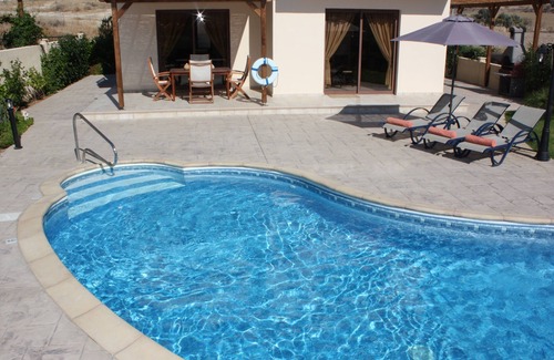 Is a unique3 bedroom bungalow villa, ( can sleep up to 6 persons ) very luxurious detached villa with big private pool, landscaped garden and private parking, located at Pissouri Bay area about 2.5 Km from the beach 3 minute drive.. No expense has been spared to make the property one of the most attractive villa in the area. Furnished to an extremely high standard and boasting all modern comforts, both interior and exterior, the villa has been specifically designed to cater for luxury villa holidays. Situated in the principal vine growing area of Cyprus, Pissouri which is located half way between Limassol and Paphos and is a great base from which to explore both destinations. It extends from the traditional village on the hillside, down to the sheltered Bay with its clear blue sea, both areas possessing unique character and charm. The locality boasts a wide selection of restaurants, tavernas, bars, cafes, supermarkets, and a public beach.