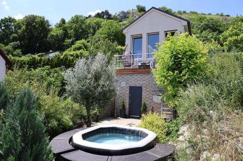 11 miles from Chateau Valtice in Klentnice, Vinný sklep Klentnice features accommodations with access to a hot tub. This property offers access to a terrace, free private parking, and free Wifi. Lednice Chateau is 12 miles away and Trade Fairs Brno is 29 miles from the apartment. The apartment has 1 bedroom and 1 bathroom with a walk-in shower, a hot tub, and bathrobes. Guests can take in the views of the mountain from the balcony, which also has outdoor furniture. Additional in-room amenities include wine or champagne. There is an on-site bar. Guests can also relax in the garden. Špilberk Castle is 30 miles from the apartment, while Colonnade na Reistně is 12 miles from the property. Brno-Turany Airport is 29 miles away.