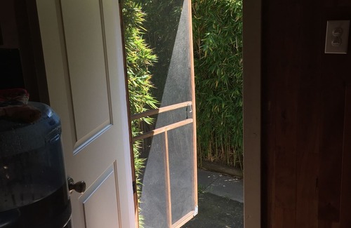 This main room looks out over the backyard where hummingbirds, songbirds and sparrows live. Very peaceful.