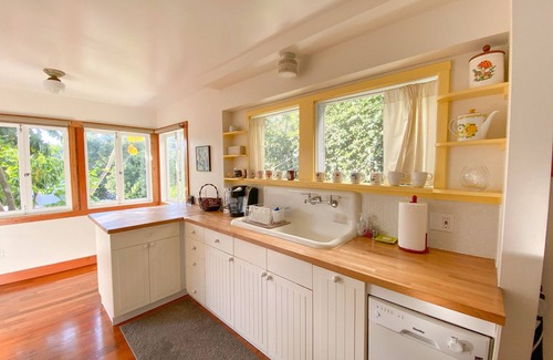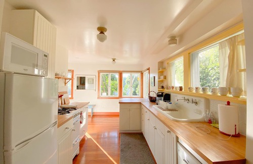 Tucked away from the street, you can have the best of both worlds in this 2BR 1BA: the city and a retreat, two blocks away from the best cafes, boutiques, farmers market and restaurants in the area. Once inside you'll appreciate the creative vintage decor and unique features, including salvaged douglas fir floors and woodwork, antique windows, and a kitchen loaded with old fashioned charm and an eat-in breakfast nook. The beds are super comfy and both bedrooms have light-blocking shades for late sleepers. Enjoy the peek-a-boo views of Griffith Park Observatory from the dining area too.