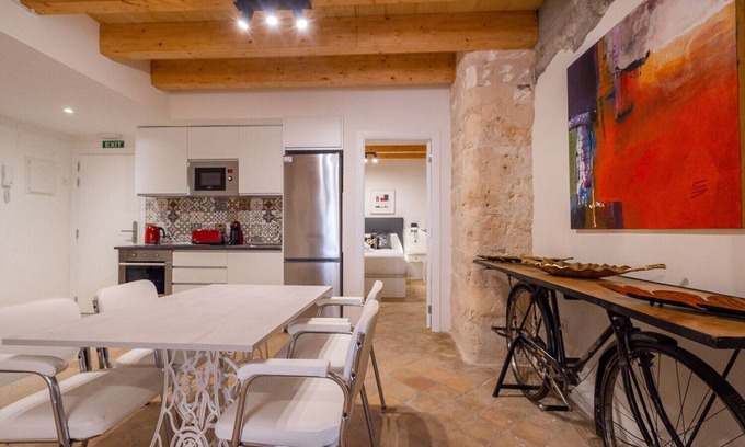 Recently renovated design apartment listed as Turismo de Interior located in an emblematic building in the center of Palma de Majorca, Balearic Islands, next to the Plaça de Santa Eulàlia. This is the old "Toy Museum" converted in 2019 into spectacular holiday apartments with all the luxury of details, in which elements of modern design merge with details of the classic Mallorcan architecture of much value and some pieces of the museum that in his day it was.It has a capacity for 2 people, a bedroom with a double bed and a double sofa bed in the living room. We can install a cot, on request, for a cost of €10/day. In the event that you need it, please inform us at least 48 hours in advance. Both the building and the apartment are fully equipped with all the necessities to enjoy a fantastic stay. The building is located in a very quiet street where vehicles hardly pass. You can enjoy walking through the essence of the city of Palma de Majorca from its historic center.Booking conditions: - A deposit of €250 will be retained during your stay.Rules:-It is totally forbidden to smoke inside the property, in case of not complying with the rule you will be penalized.-Please keep order and cleanliness inside the apartment.-Please respect the areas of the community: stairs and hallway, keeping them clean and going through quiet restrictions.ANY EXCESSIVE NOISE, HIGH MUSIC AND THE HOLIDAYS ARE STRICTLY PROHIBITED! In the case of receiving complaints from neighbors due to excessive noise or annoying behavior by any person in their group, the owner has the right to expel the client and all guests from the apartment regardless of whether it is day or night and without giving any refund of the amount already paid for the reservation, remaining also with the deposit."Covid-free": This accommodation follows all professional cleaning and prevention protocols to make your stay as comfortable and safe as possible; The entire establishment is private and you will not have direct contact with any person throughout your stay, since it does not have common areas.Note: The apartment is located in an area for residents only. To access the property by car, it is essential that we contact the City Hall to request a circulation authorization for you. We will give you instructions when you make the reservation.