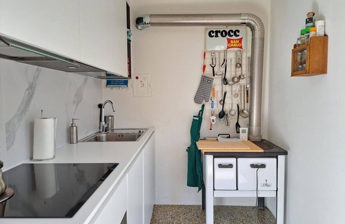 The kitchen has all the comforts for a long vacation, induction hob and new appliances for cooking like at home, and a beautiful wood stove.