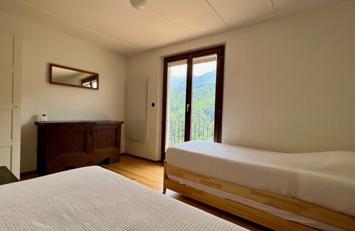 The twin room with two single beds offers the same extraordinary view of the valley as the master bedroom and opens onto the balcony on the second floor.