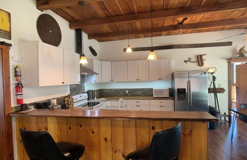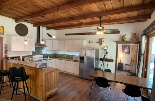 Built In 1926, the Huff House used to be the warehouse for the village store until we renovated it in 2019. I love the high timber ceilings and great views of Mount Hough. The house is in the village of Crescent Mills (200 people) at an elevation of 3500' and looks to the mountains at around 7,200'.