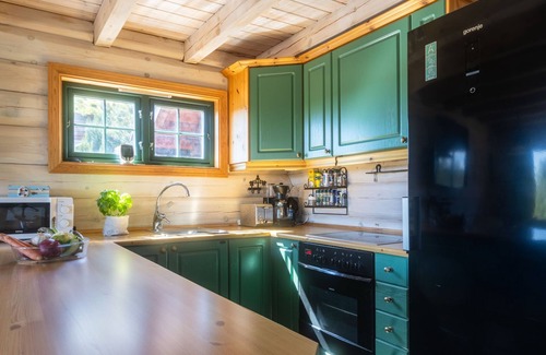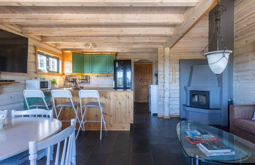"Vinterro", 6-room house 110 m2 on 2 levels. Cosy furnishings: living/dining room with Scandinavian wood stove, dining table and satellite TV. Exit to the terrace. 1 double bedroom with 1 double bed (150 cm, length 200 cm). 1 small room with 1 x 2 bunk beds (80 cm, length 200 cm). Open kitchen (oven, dishwasher, 4 ceramic glass hob hotplates, toaster, kettle, microwave, electric coffee machine). Shower/WC, Sauna. Upper floor: open small living room with sloping ceilings with satellite TV. Exit to the balcony. 2 small double bedrooms with sloping ceilings, each room with 1 double bed (150 cm, length 200 cm). Bath/WC. Electric heating. Wooden floors, natural stone floors. Small balcony, terrace. Terrace furniture, barbecue (portable). Very beautiful view of the countryside. Facilities: washing machine, dryer, sauna, children's high chair, baby cot, logs (extra). Internet (WiFi, extra). Please note: non-smoking house. Maximum 1 pet/ dog allowed. Smoke alarm, fire extinguisher. Freezer approx. 80 l. 924531169