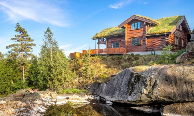Very beautiful, cosy, rustic timber house "Vinterro", 390 m a.s.l built in 2004, surrounded by trees. 12 km from the centre of Kyrkjebygd, 79 km from the centre of Mandal, 84 km from the centre of Kristiansand, in the district Eikerapen, 3 km from the lake, 10 m from the stream, in the countryside. Bathing place. Private: natural state property 800 m2, parking at the house. Shop 12 km, bus stop "Fiskland" 5.3 km, railway station "Audnedal" 43 km, ferry "Kristiansand" 84 km, lake Øre 3 km. Fishing possibilities 2 km.