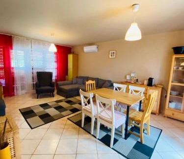 Violet Holiday’s House offers accommodations in Siófok, 1.6 miles from Sosto Beach and 1.1 miles from Bella Stables and Animal Park. The air-conditioned accommodation is a 18-minute walk from Siofok Aranypart Beaches, and guests can benefit from private parking available on site and free Wifi. Outdoor seating is also available at the vacation home. Offering a terrace and quiet street views, the spacious vacation home includes 3 bedrooms, a living room, satellite TV, an equipped kitchen, and 2 bathrooms with a shower. Towels and bed linen are offered in the vacation home. For added privacy, the accommodation features a private entrance. Guests at Violet Holiday’s House can enjoy cycling nearby, or make the most of the garden. Bebo Aquapark is 1.5 miles from the accommodation, while Museum of Minerals is 3.7 miles from the property.