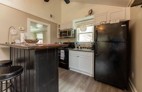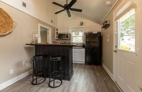 All the space you need to relax and rejuvenate in the Outer Banks, Downtown Manteo! The easy-use kitchen is simple but complete and perfect for preparing meals. BONUS - your own private propane grill on your patio at the entrance! The cozy bedroom has a queen-size bed and comfy reading chair, walk-in closet, and attached bath w/ newly renovated tile shower. Outside, enjoy a brick patio and figs in season. Virginia Dare Cottage has wifi accessibility, Smart TV, off-street parking for one vehicle, easy access, and is centrally located to all the attractions Roanoke Island has to offer. Located behind the main residence, Austin House, in the historic area of Manteo, Virginia Cottage is ready for visit to the Outer Banks.