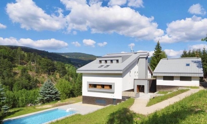 Modern apartment block. In the resort 1.5 km from the centre of Rokytnice nad Jizerou, in a sunny position, 4 km from the skiing area. For shared use: property, beautiful garden to relax, swimming pool (12 x 6 m, seasonal availability: 01.Jun. and 30.Sep.). Terrace, fireplace. In the house: central heating system. Parking at the house. Supermarket 2 km, restaurant 2 km, bar 2 km, bus stop "U Kroupů" 950 m. Walking paths from the house 100 m, cycle lane. Nearby attractions: Stráž rozhledny 4 km, Huťský vodopád,Františkov muzeum 6 km, Dinopark,Trollandia (Pl) 30 km, Termy Cieplickie(Pl) 45 km, radniční věž 2 km, Western City (Pl) 55 km. Well-known ski regions can easily be reached: Kamenec Jablonec n/J 4 km, Studenov,Dvoračky 7 km, Lysá hora 6.5 km. Hiking paths: Gigateria Piechowice(Pl) 38 km, Park miniatury Kowary44km,Karpacz (Pl) 55 km, Labská bouda,Vosecká bouda 13 km.