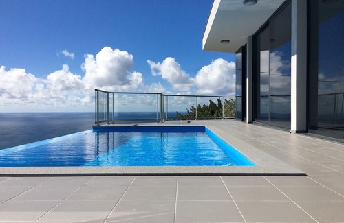 Absolutely NEW, modern design, luxury 2-bedroom Villa “Vista Azul” located in a quiet urban area at 100m above Calheta promenade, right above Calheta Beach hotel**** where you can easily walk down from the Villa along the secured mountain walk. In Calheta you will find guarded public beach with all beach activities, big supermarket “pingo doce”, about 7 different restaurants including Calheta Beach hotel**** and Savoy Saccharum hotel***** beach bars/restaurants. Nearby you will enjoy visiting places like modern Museum of Art, authentic "Aguardente de Cana" factory (where tourists from Funchal come for Excursions) and the Calheta Harbor where you can book your "Animal watching" trip, fishing, sail or boat excursion.