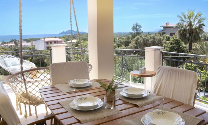 "Vista Mare In Sardegna", 3-room apartment on 2nd floor. Comfortable and cosy furnishings: living/dining room with TV, flat screen and air conditioning. Exit to the terrace. 1 double bedroom. 1 room with 2 beds. Kitchenette (oven, 4 gas rings, toaster, kettle). Shower/bidet/WC. Boiler. Terrace furniture. Very beautiful distant view of the sea. Facilities: washing machine, iron, hair dryer. Internet (WiFi, free). Parking (1 car), garage on the property. Please note: suitable for families. Non-smokers only. Maximum 1 pet/ dog allowed. IT091006C2000T0620