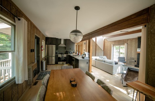 Come and relax at Vista View- a unique, 1970 contemporary cabin in the heart of Lake Harmony! The raised home and large wrap around deck will feel like you're staying in a treehouse. Enjoy the private hot tub with woodland views, the outdoor firepit, access to Lake Harmony & LH Beach, and much more! Central to the Poconos, Lake Harmony seated between Boulder View and Jack Frost Mountain with "Restaurant Row" & Split Rock Water Park right around the corner. HIGH SPEED INTERNET & Netflix provided