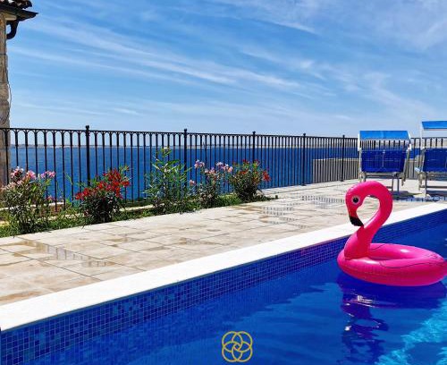 Food & DrinkWine/Champagne, Minibar, Chocolate/Cookies, Tea/Coffee maker, Bottle of waterBathroomBathtub or shower, Bathtub, Hairdryer, Walk-in shower, Toilet, Free toiletries, Towels, Toilet paper, Shampoo, Guest bathroom, ShowerMedia & TechnologyStreaming service (like Netflix), Flat-screen TV, TVGeneralAir conditioning, Fire extinguisher, Private entrance, Key access, Heating, Tile/Marble floor, Fan, Key card access, Iron, Trash cansOutdoorsPrivate pool, Balcony, Outdoor furniture, Outdoor dining area, Barbecue, Terrace, PatioKitchenWine glasses, Cleaning products, Dryer, Stovetop, Dishwasher, Toaster, Electric kettle, Oven, Coffee machine, Dining table, Microwave, Kitchen, Refrigerator, Washing machineLiving AreaSofa, DeskBedroomLinens, Extra long beds (> 6.5 ft), Wardrobe or closetViewGarden view, Pool view, View, Sea viewBuilding CharacteristicsPrivate apartment in buildingRoom AmenitiesFeather pillow, Socket near the bed, Drying rack for clothing, Clothes rackEntertainment & Family ServicesBoard games/puzzles, Books, DVDs or music for childrenPool and SpaHeated pool, Pool towels, Pool with a view, Saltwater pool, Pool coverPhysical distancingSingle-room AC for guest accommodationCleanliness & disinfectionHand sanitizer |