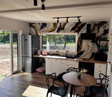Featuring garden views, Vistalake in Michale offers accommodations, a private beach area, a garden, and barbecue facilities. The air-conditioned accommodations are 3 miles from Grudziądz Granaries. The resort village features lake views, an outdoor fireplace, and free Wifi is available throughout the property. Each unit features a terrace, a fully equipped kitchenette with a dishwasher, a dining area, and a flat-screen TV, while the private bathroom includes a shower and a hair dryer. An oven, a microwave, and toaster are also available, as well as a kettle. At the resort village, each unit has bed linen and towels. Guests at the resort village will be able to enjoy activities in and around Michale, like walking tours. The resort village has a picnic area where you can spend the day outdoors. Planetarium and Observatory is 2.9 miles from Vistalake, while Water Gate is 3.1 miles from the property. Bydgoszcz Ignacy Jan Paderewski Airport is 44 miles away.
