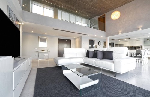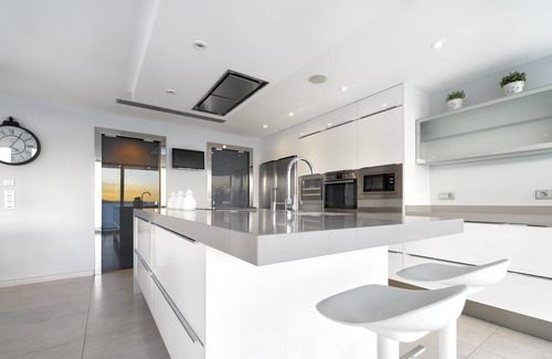 Villa Vistamar MC will not leave you indifferent: Enjoy long hours of sunshine and spacious, luxurious areas, both outside and inside of the house. You will find different ambiences outdoors; the landscaped entrance where the avant-garde design of the villa is perfectly contemplated, a fantastic swimming pool (heatable surcharge) and sunbeds arranged around it as a solarium, a covered area with outdoor furniture where you can enjoy a good read or a glass of wine and, through some stairs, you will find a barbecue area with a small kitchen and a high dining table.