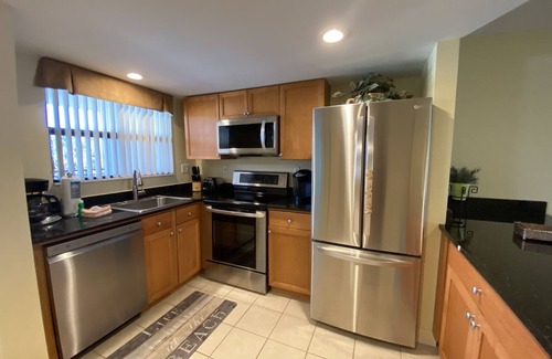 While you're here, you can enjoy all the comforts of home and more, including a heated pool and a full-sized refrigerator/freezer, as well as an oven and a stovetop. Other amenities include laundry facilities, a freezer, towels, and an ice maker.