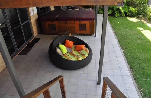 Your pets are welcome to enjoy a number of exterior areas including a spacious secured courtyard with a sheltered section attached to one of the master bedrooms, and extensive undercover balconies adjacent to and looking through glass doors directly into living areas. The huge upper deck is securely enclosed for your pet's safety and enjoyment and also has a large sheltered section. A large kennel is available on request. Pets however are not permitted indoors.