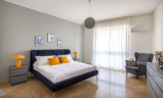 Charming modern apartment located in Palermo with a balcony overlooking the square, ideal for groups and families.The accommodation, on the fourth floor of a building with an elevator, opens onto the living area from which you can access one of the balconies in the property, overlooking the square, perfect for outdoor dining. The living room consists of a sofa and television. The kitchen is fully furnished, with a gas stove, microwave, kettle coffee maker, dining table, and has a balcony overlooking the interior and laundry room. The sleeping area includes three bedrooms with queen size beds. A balcony can be accessed from the master bedroom. Two bathrooms with shower and bidet complete the layout. *At arrival or a few days before arrival you may be required to pay a tourist tax, the amount of which varies according to local regulations. You will find all information regarding your reservation within the Guest Area of Wonderful Italy.Palermo, among the most beautiful art cities in the country and the capital of Sicily, offers the wonder of UNESCO heritage sites that can be visited in the city's four historic districts. In this regard, tourists can take part in the “Baroque Route of Palermo” to visit the main monuments of the city, such as: the Church of the Holy Savior, Church Santa Maria del Monte Oliveto and the Church of the Conception. The city also offers the opportunity to take part in the “Tour of Palermo's Historic Markets,” which will allow guests to explore the markets of Ballarò and Capo, where lunch or snack it may be, at the Palermo market, dishes are to be “strictly” tasted with the sole help of the hands! This tour will also give tourists the opportunity to admire notable buildings, streets and squares.Palermo Falcone e Borsellino Airport can be reached in about 30 minutes by car, while the station is a 20-minute drive away.