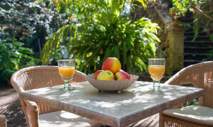The owner, a garden designer, lives on the same estate. The garden stands out for its variety of botanical species, a small private 'botanical garden,' which includes a small greenhouse area where she cultivates her collection of bamboo, among other plants. The house is located 2 km from the village of Santa Brígida, in a very quiet yet central location. It is surrounded by a magnificent garden within a beautiful ecological estate of 15,000 m², planted with various fruit trees (oranges, lemons, plums, pears, loquats, persimmons, quinces, nectarines, and more), where you can walk and enjoy the views and flora of the area.