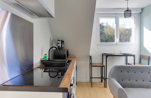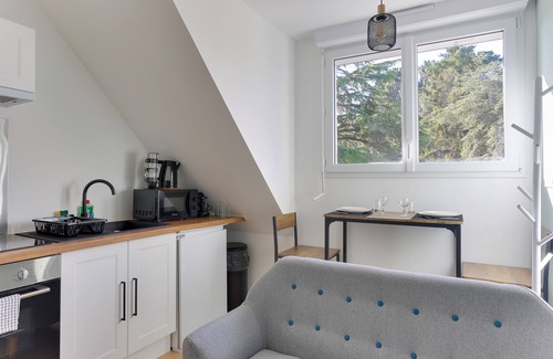 Cocoonr/Book&Pay agency offers this charming 28 m² flat in Bruz can accommodate up to 2 people. Located on the 2nd floor (no lift), it comprises a 20 m² living room with open-plan fitted kitchen, a bedroom, a shower room and a shared garden of around 1,500 m². Wifi (fibre optics), bed linen and towels included, we're waiting for you!