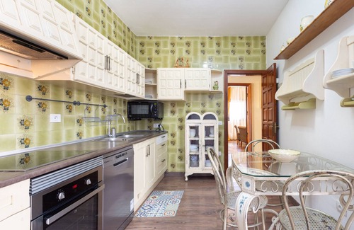 The open-plan kitchen is fully equipped with all appliances, including a fridge, freezer, dishwasher, oven, microwave and coffee maker, which will facilitate the preparation of delicious meals.