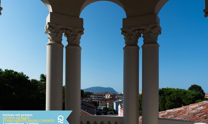 Beach service included in the stay, which includes a beach umbrella and two sun loungers at the “Bagni Lorenzo” beach resort
